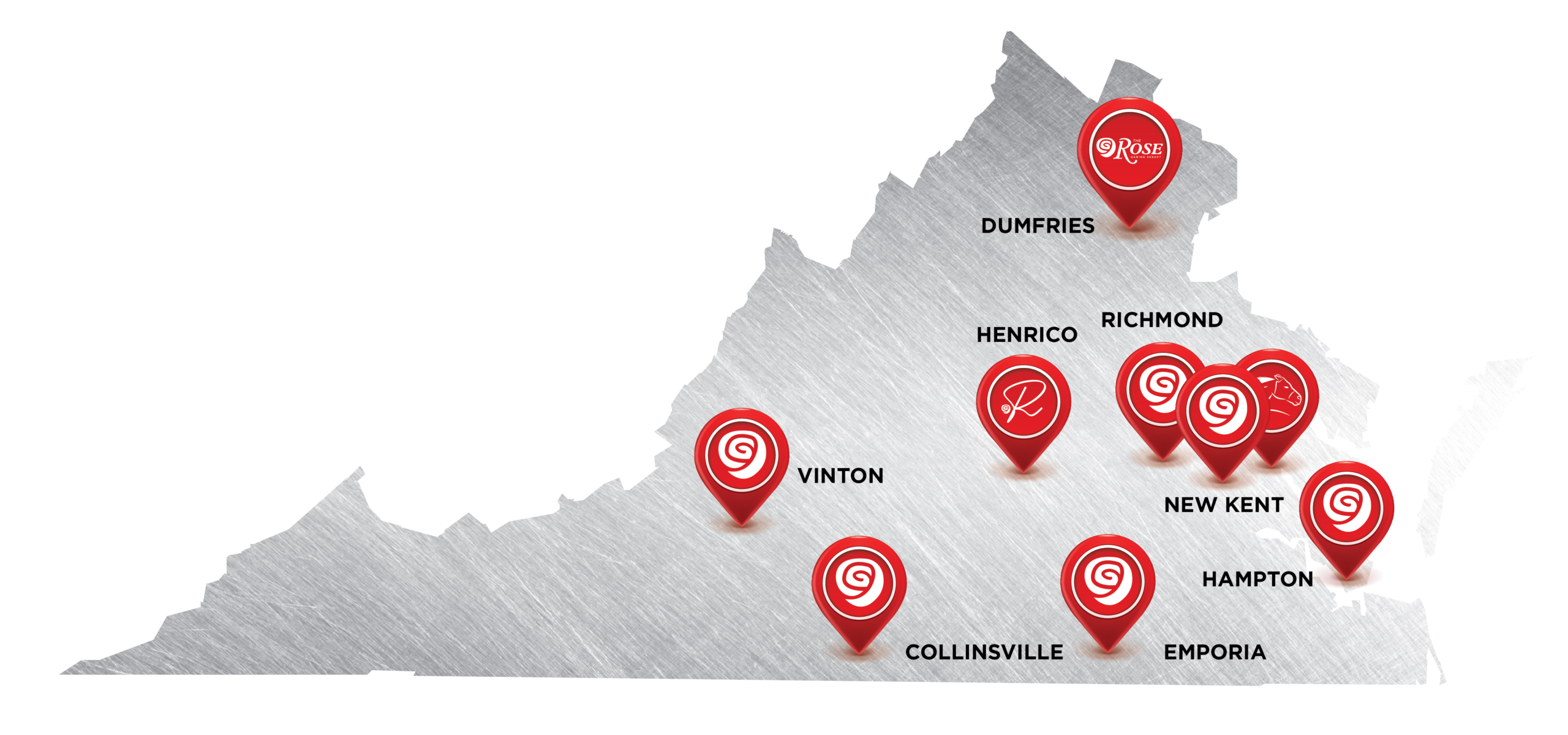 With eight locations across Virginia, winning has never been closer! Join us in New Kent, Vinton, Richmond, Hampton, Dumfries, Emporia, Henrico and Collinsville for a chance to win the Largest Jackpots in Virginia.